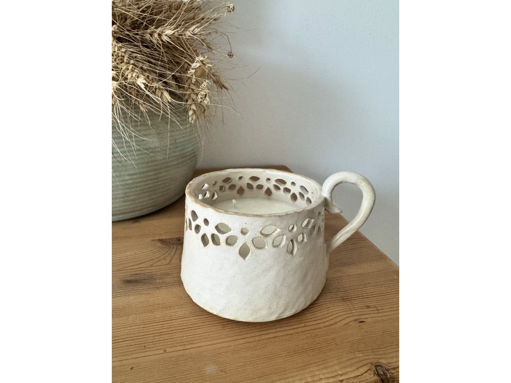 Nádherný přírodní svícen s uchem pro vás ve své dílně vyrobila Lenka Hložková a já ho s radostí naplnila sójovým voskem s jarní lehkou vůní aloe vera.